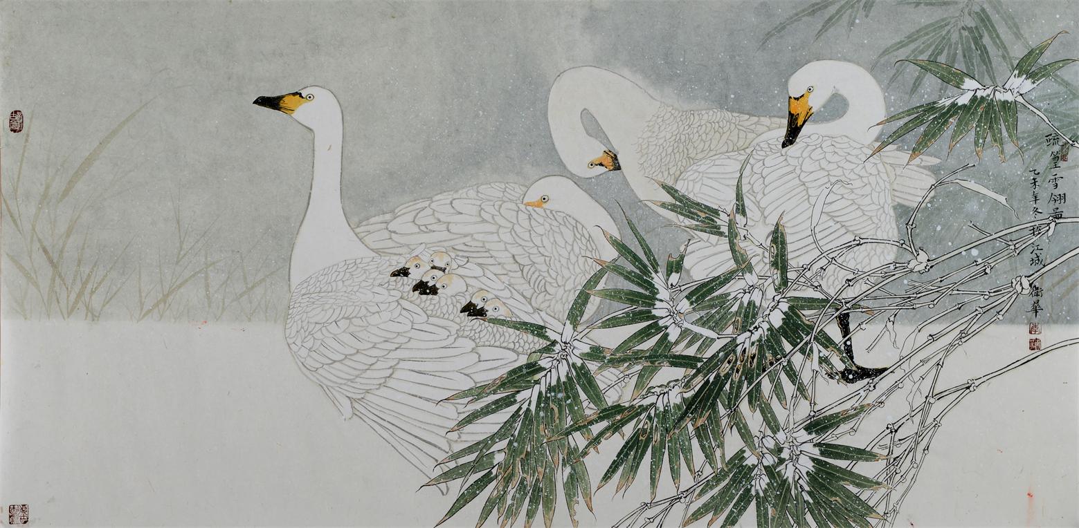 2010年《雪篁集禽》参加上海世博会中国美术作品展。(中国美协主办)