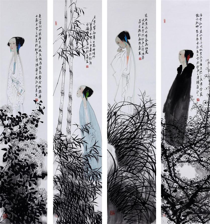 • 梅兰竹菊四条屏