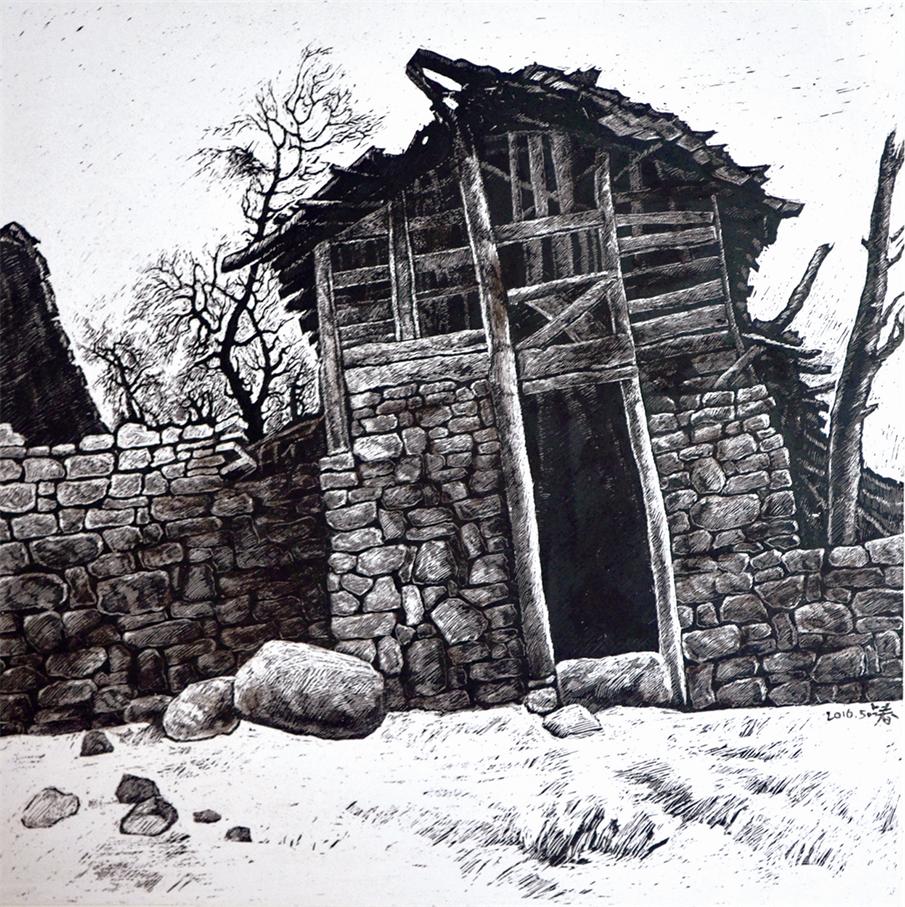 于占春独创的纸本墨刻画具有不可印制的独一无二的特性,是一种跨界的绘画形式。作品大多反映人与自然亲近共存的关系,富有哲理和诗性的境界;继承了传统版画的雕琢与古朴,通过巧妙的“留黑和见白”,用丰满密集和萧疏简淡的表现形式,以装饰与表现结合,简洁质朴,自然率真;以刀代笔,以白破黑;以小观大,以黑守白,黑白相济,营造一个黑白色彩分明的唯美世界;注重意象与心灵共鸣,注重材质与刀法融合,皆在一张纸上完成,有单色与多色。作品题材多以乡土、哲理、情感为主。