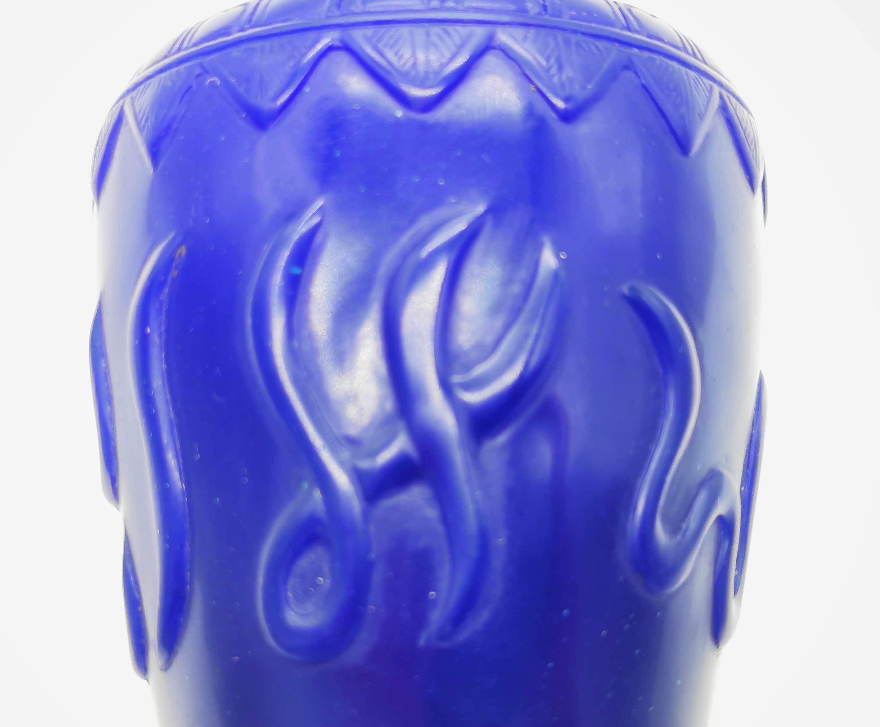 蓝宝石色纯正,包浆温润如玉,纹饰精美,雕刻精道,造型古朴典雅,十分难得。
