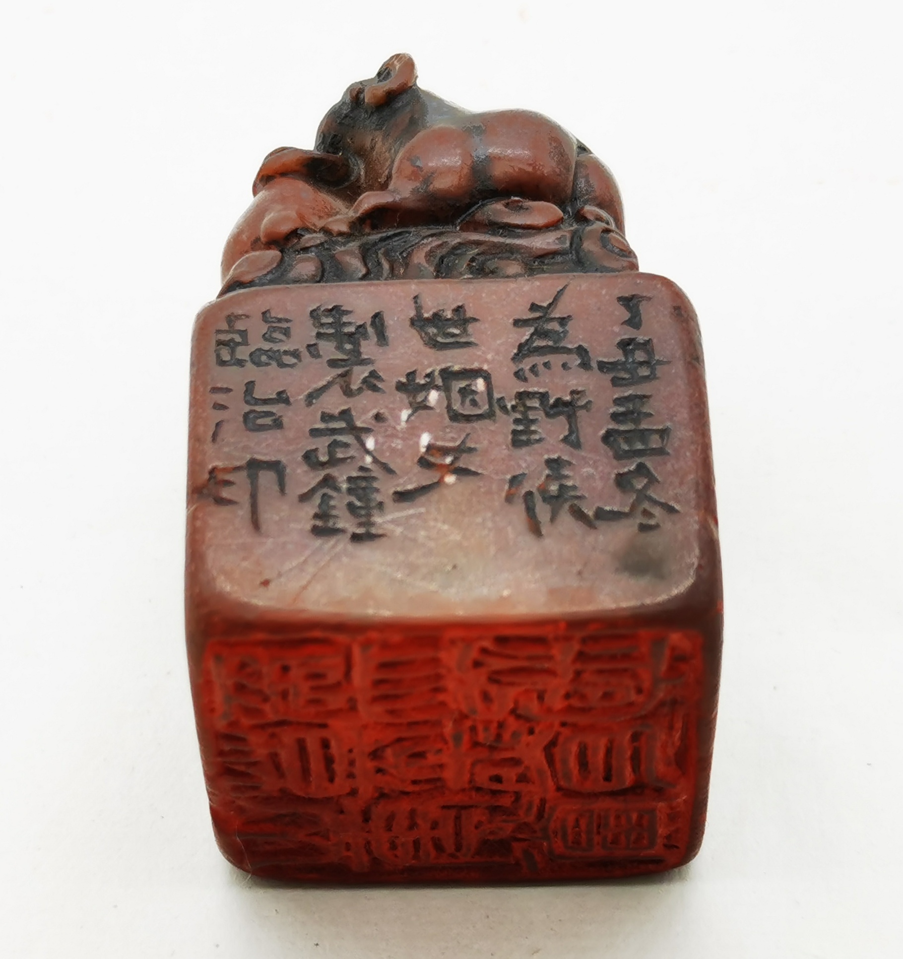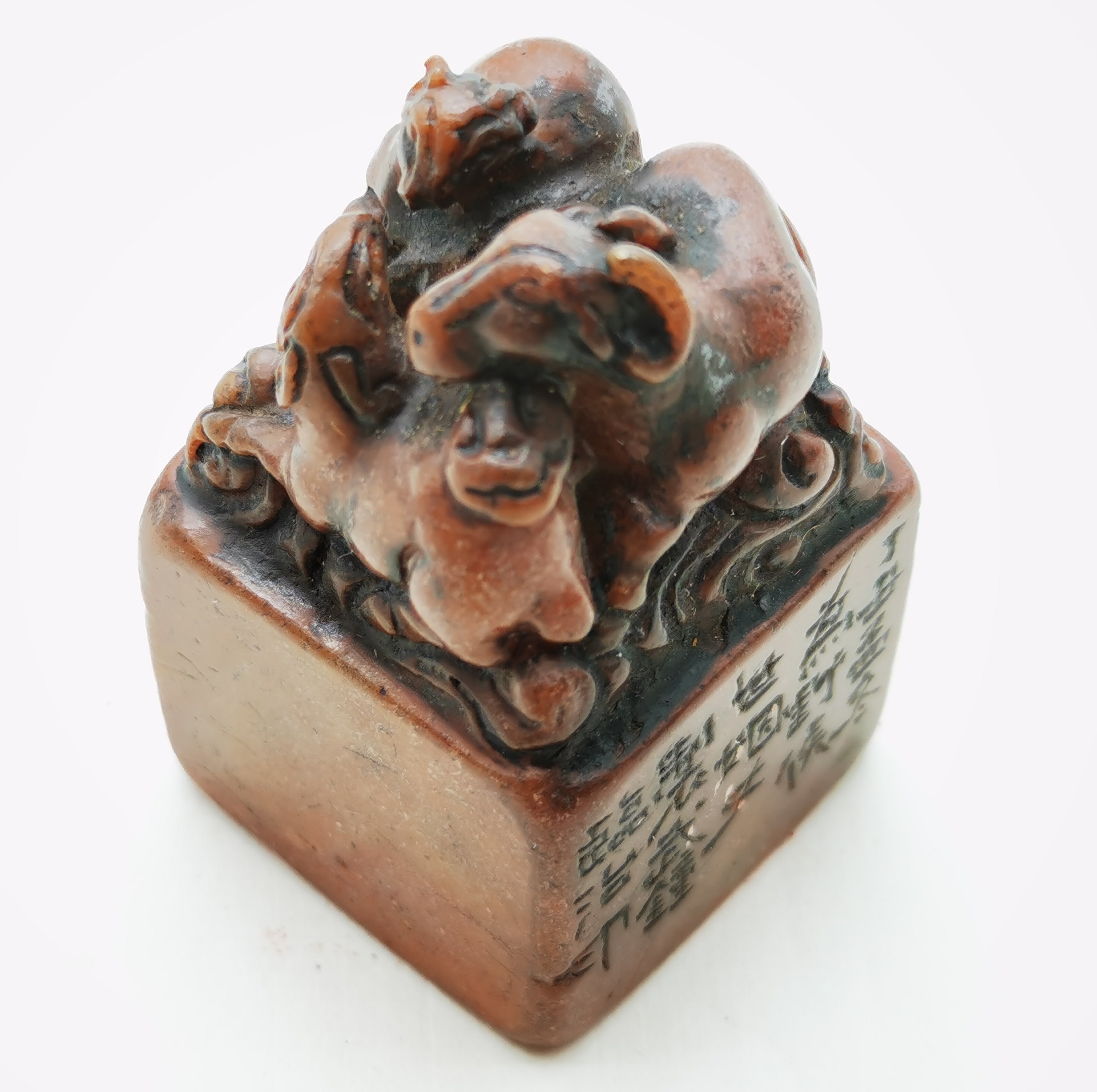 作者: 质地:当代篆刻家钟武临款寿山石雕三羊开泰钮方型印章 尺寸:3*4.8cm 0 3 创作时间: