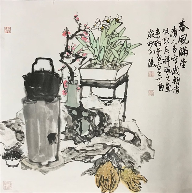 高向阳,斋号无厌斋。1953年3月生于吉林省永吉县。1977年底恢复高考制度首届考入鲁迅美术学院中国画系。1981年底毕业获学士学位。1986年调入吉林省画院任专职画家。2001年调入吉林大学艺术学院任教。现为中国美术家协会会员、中国书法家协会会员、吉林省美术家协会顾问、吉林省书法家协会理事、吉林大学艺术学院美术系教授、硕士生导师、吉林省工艺美术大师评审专家、吉林省政府文史研究馆馆员。