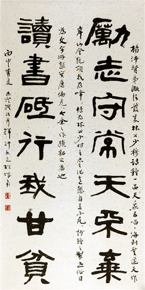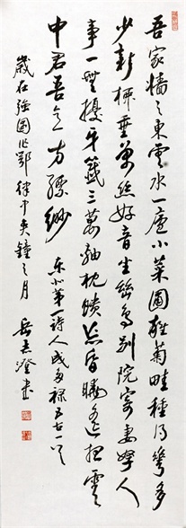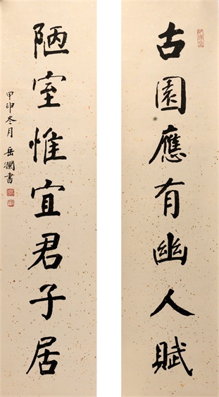 岳志澄先生云淡风清、心性淡泊,一生优游于诗画诗文之间,无意于佳、无心插柳。他年少从艺,师承来历分明,业内交游广泛:古文字学受吴玉如先生启蒙,高明、赵文房二位先生指点,诗词楹联受文史馆老馆员张润普、教育界前辈崔蔚云先生点拨,书法绘画师承于郭风惠、溥雪斋两位近代史上书画国手,又得蒋兆和、肖琼夫妇传授绘画技巧,兼得丁井文、于月川、郭慕熙、侯长春、宋君方、颜家宝、刘继瑛、赵纹、宁砥中、王雪涛等中国近现代书画高手指导,师恩难忘,不可不提。岳志澄先生毕业于北京艺术设计学院,既受过良好的现代学院系统教育,又兼有中国传统书画“课徒”式的严格训练。如此丰富的学习经历,真可谓千载难逢!也恰恰因了这种种缘分,从而成就了他集诗词、楹联、书法、绘画、治印于一身之才艺。他平生著述颇丰,计有《北京民俗联语二百选》、《书谱》、《续书谱》、《楹联匾额窥红楼》等学术专著。