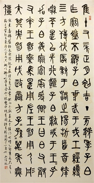 《宣和画谱》总结中国绘画曰:“国画十三科,山水打头,界画垫底”,岳志澄先生画路宽阔,于此十三科无不涉足。其山水高古荒寒、花卉雍容华贵、翎毛生动有趣、博古清淡典雅、人物逼真传神、界画精致合理……其书法碑、帖兼顾,真草隶篆,无不擅长……凡此种种,不一而足。